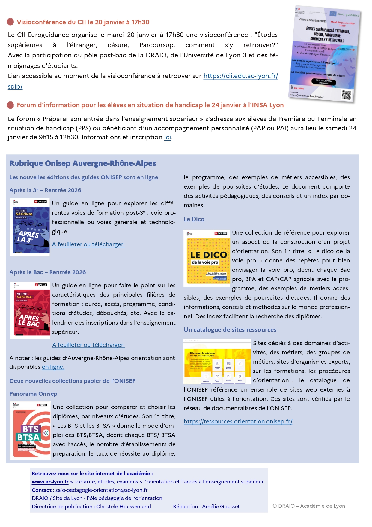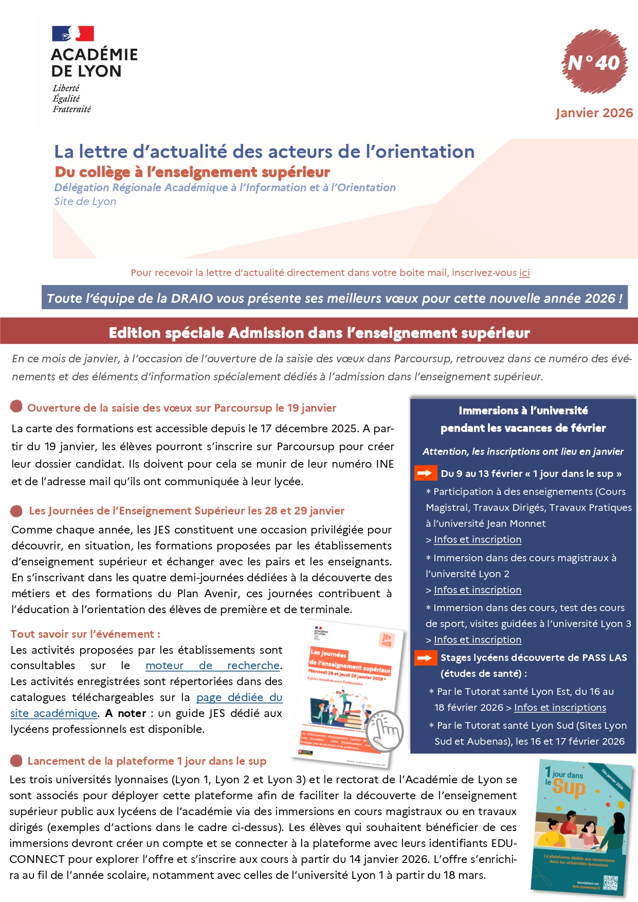 Parcoursup ouverture; Journées de l'Enseignement Supérieur; Immersions à l'université 1jour dans le sup ; Visioconférence du CII le 20 janvier à 17h30