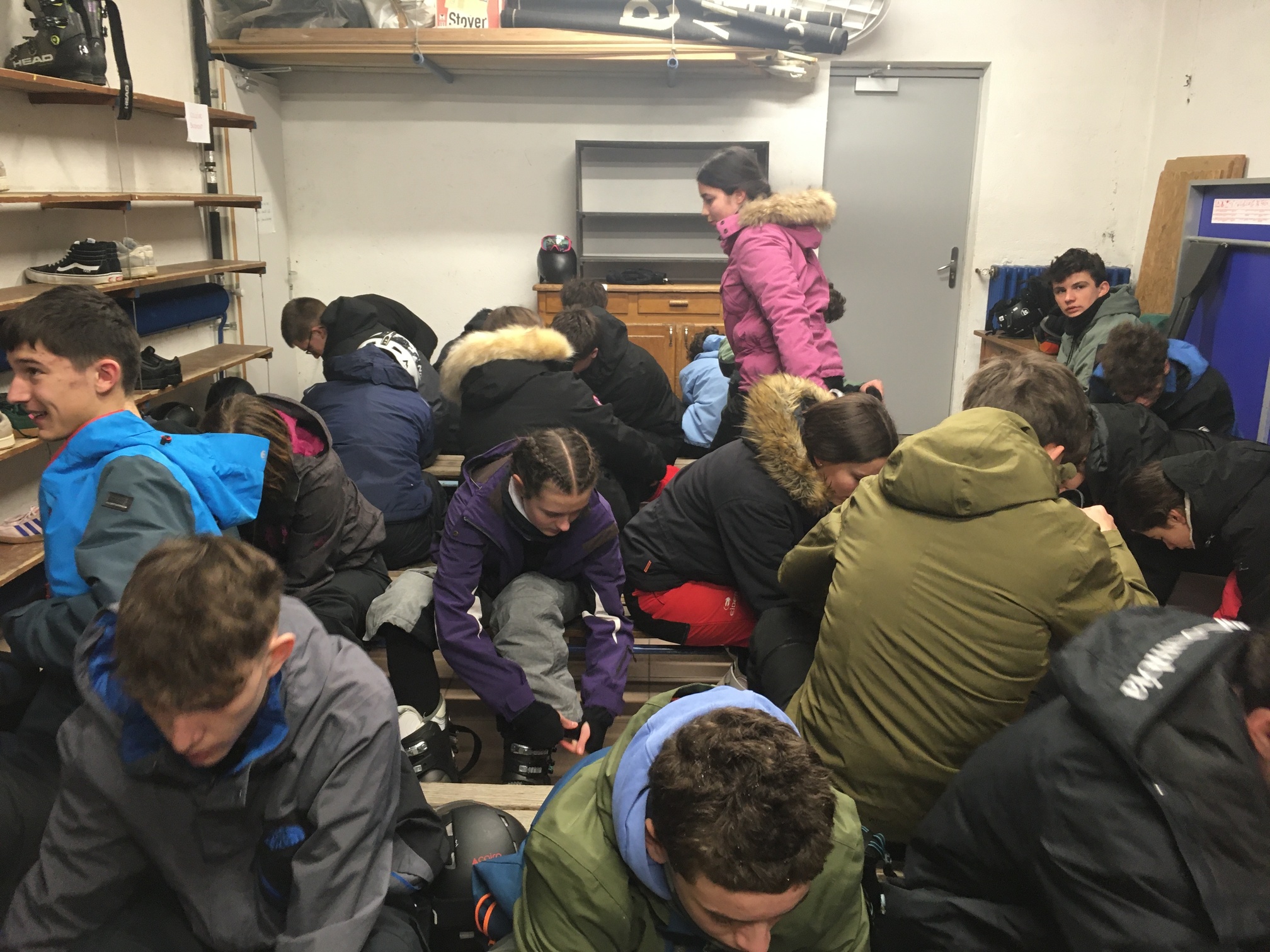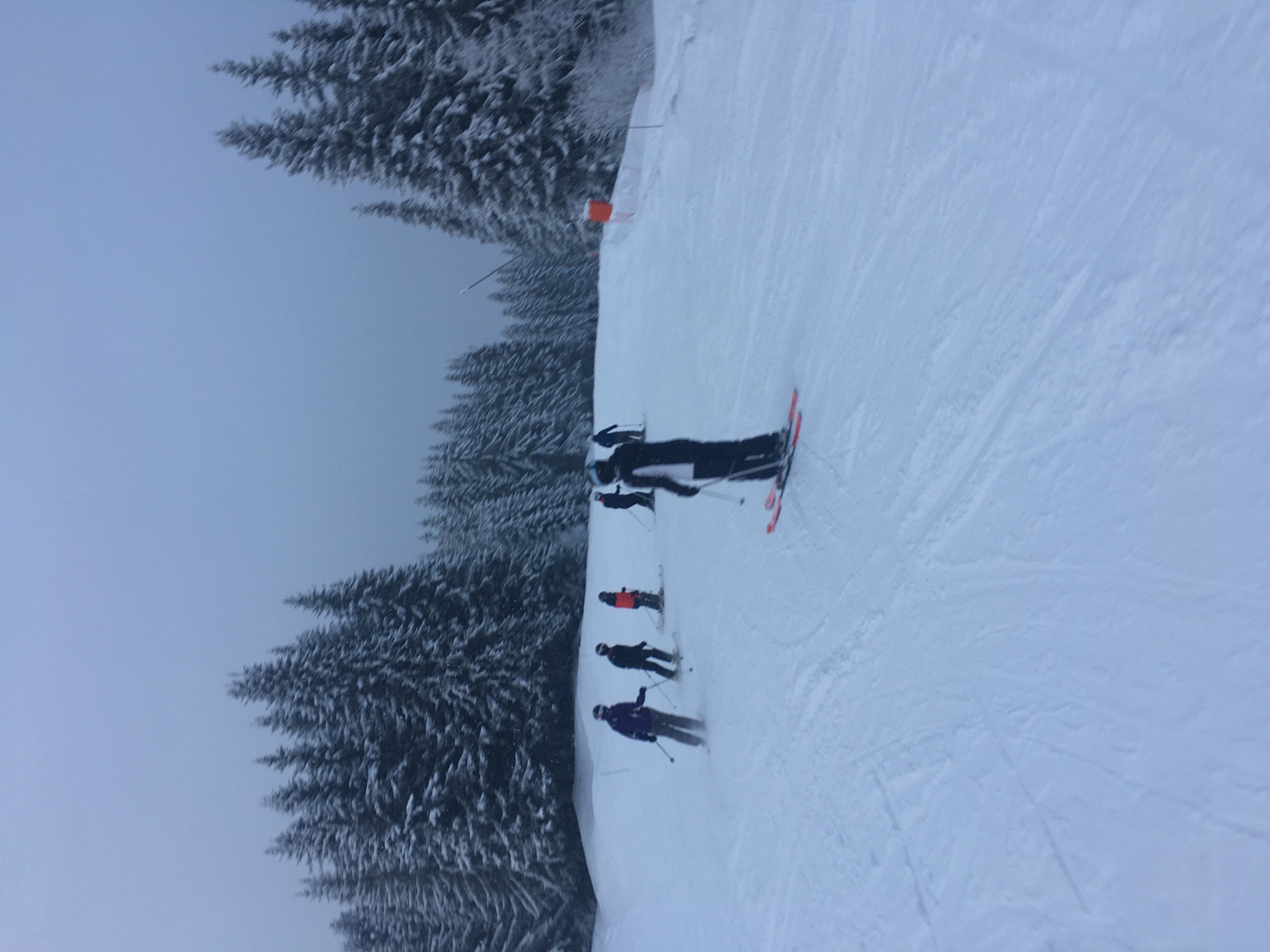 Le petit-déjeuner à 7h30 a lancé la journée, avec les deux groupes de débutants qui ont profité de conseils des moniteurs pour améliorer leur technique pendant que les groupes d'élèves plus à l'aise essayaient de profiter des pistes même si un télésiège a rendu l'attente très longue et perturbé le déroulé de la matinée.