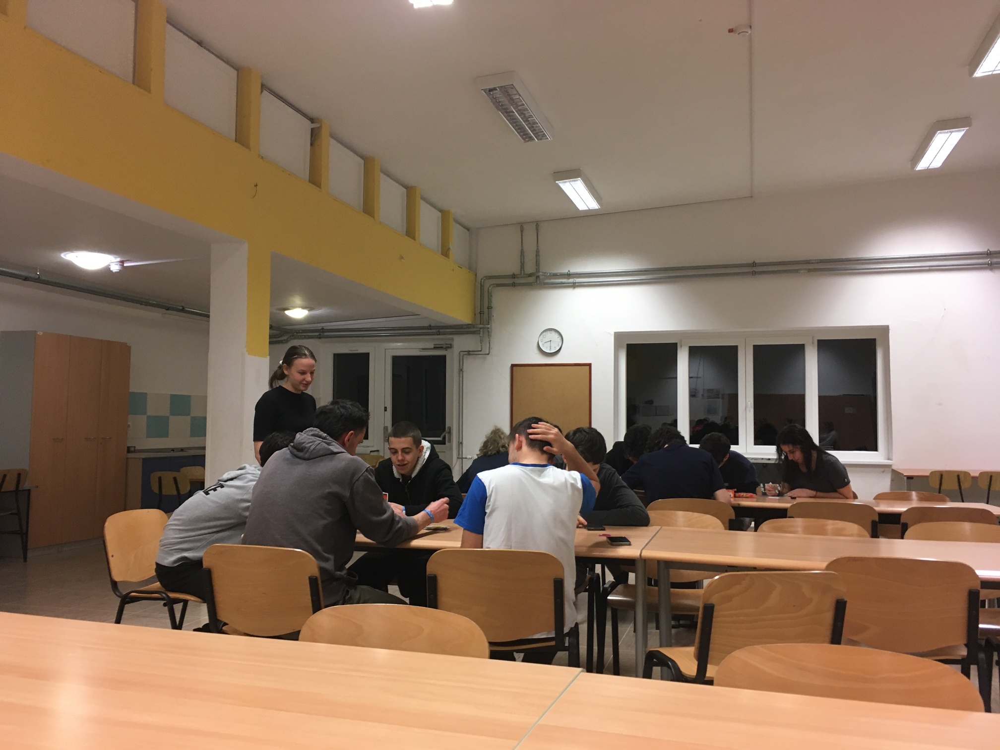 La salle commune avec baby foot et tables de jeux a été aussi bien utilisée ce soir.